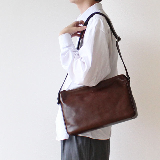 肉厚な北米産原皮を日本で鞣した、しなやかで柔らかな質感と品の良い艶感のベジタブルレザーを使用。お出かけにちょうど良いサイズのショルダーバッグやビジネス対応のA4サイズアイテムなど、使うシーンを想定してデザインされた機能性が詰まっています。どのようなスタイリングにもマッチし、毎日持ち歩けるシリーズです。
