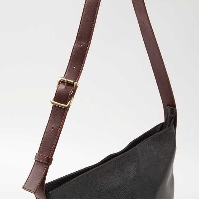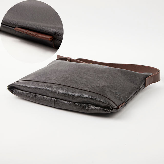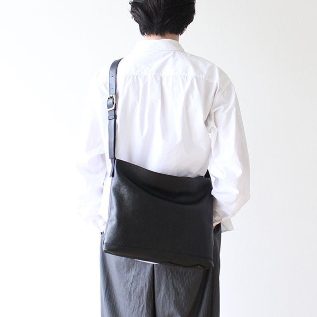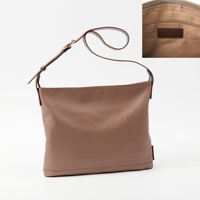 国産型押しレザーを使用した、気軽に使える薄マチショルダーバッグ。